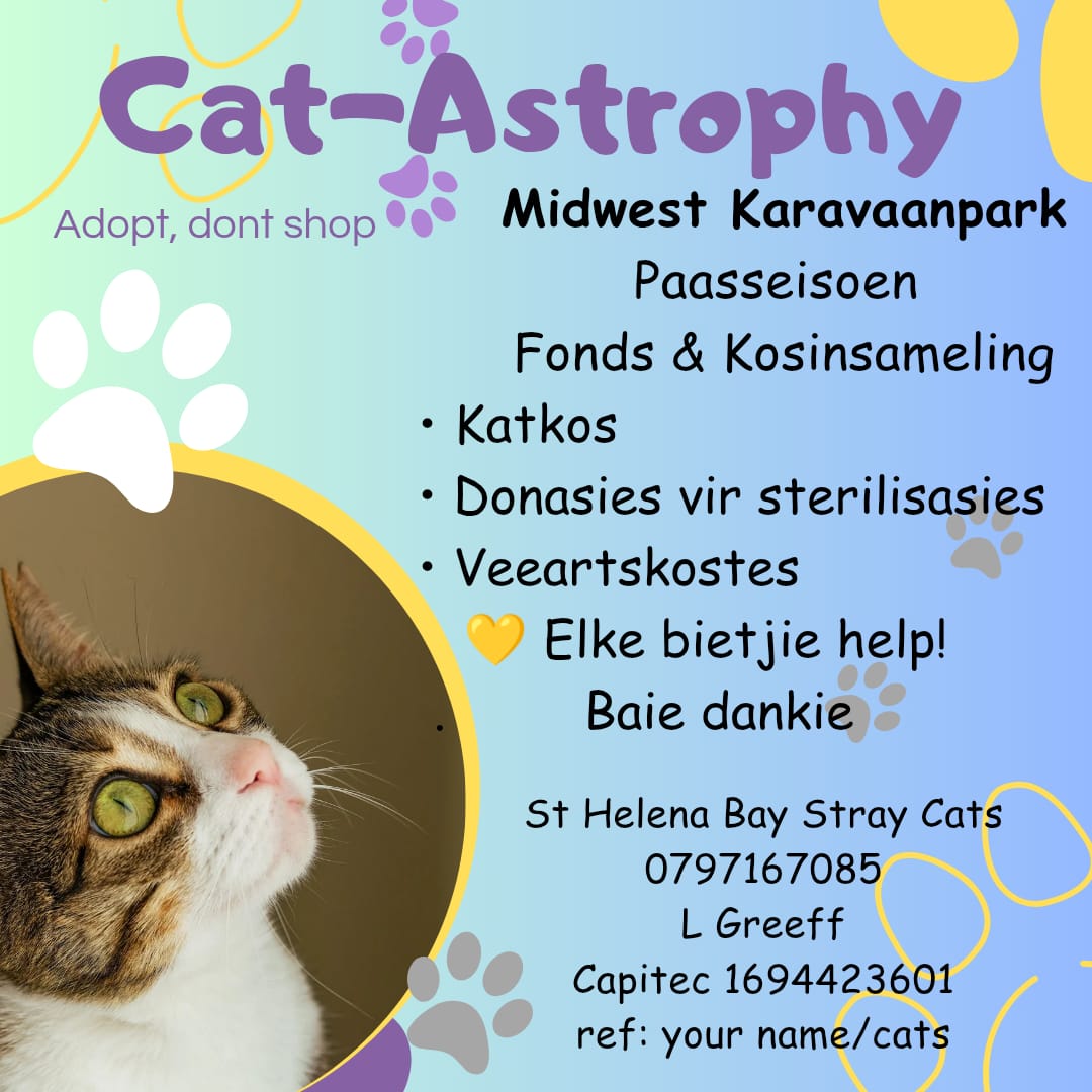 Ons by Midwest Karavaanpark ondersteun Lynette van Cat’Astrophy – ’n ongelooflike vrou wat daagliks omsien na straat-, vullishoop- en hawekatte. ![]()